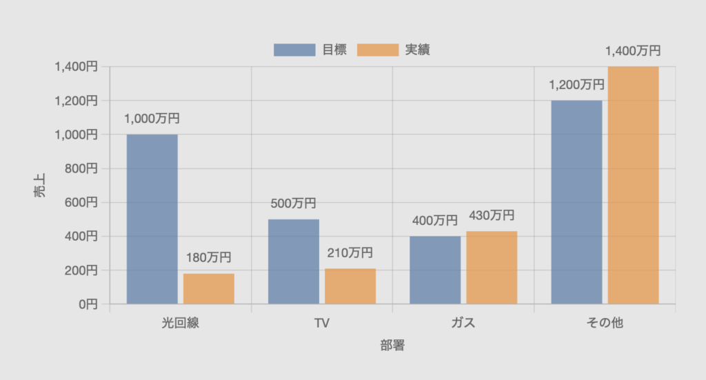 ・用途:売上の推移、部門ごとの比較、年度別の実績など