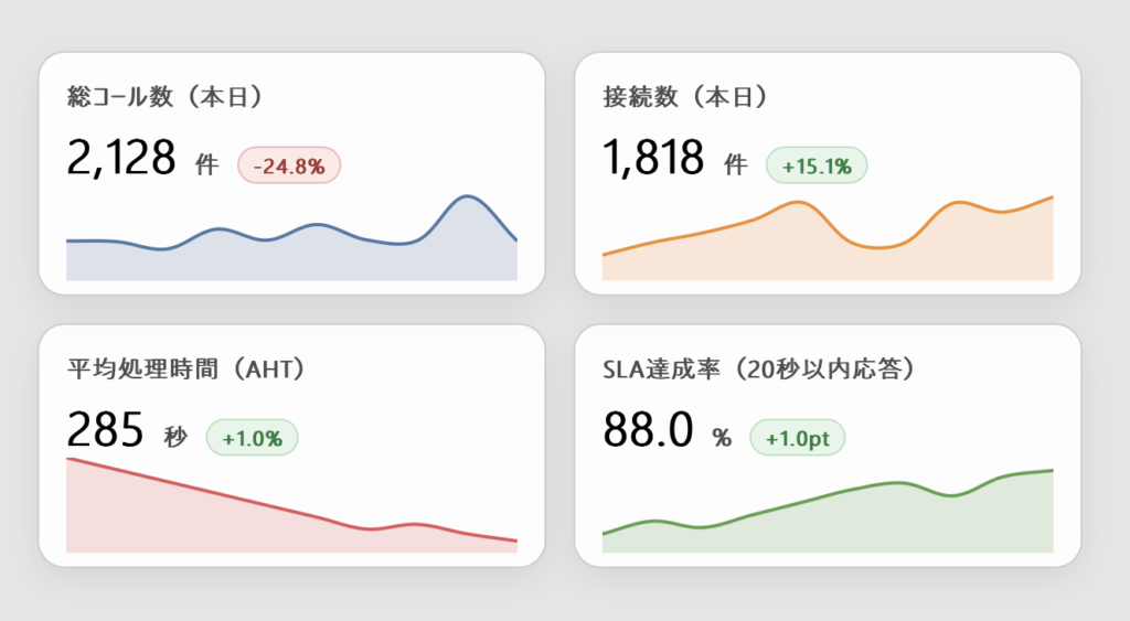 ・用途:主要数値(売上、契約数など)を強調表示しつつ、小さな折れ線でトレンドを補足