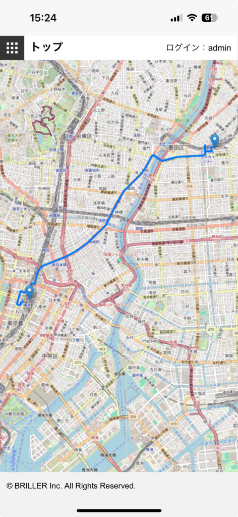 これでもう一度FileMaker Goで確認してみると画像のようにルートが表示されました。