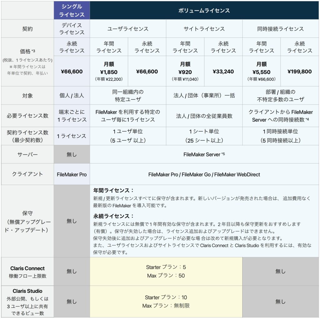 Claris FileMaker 製品・ライセンスカタログ